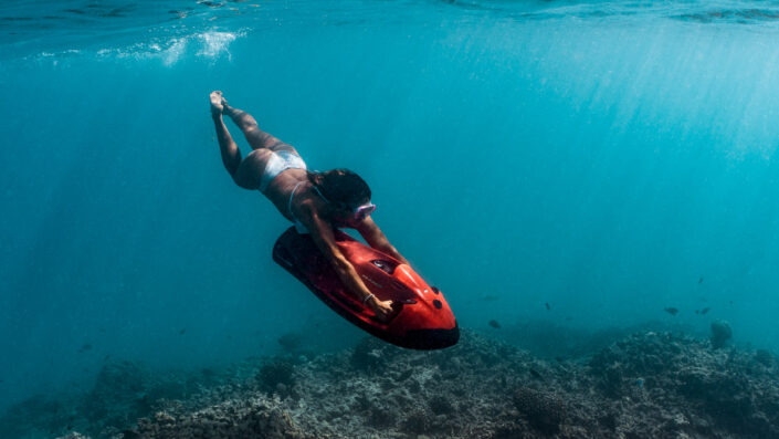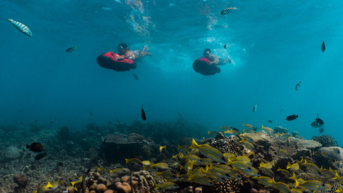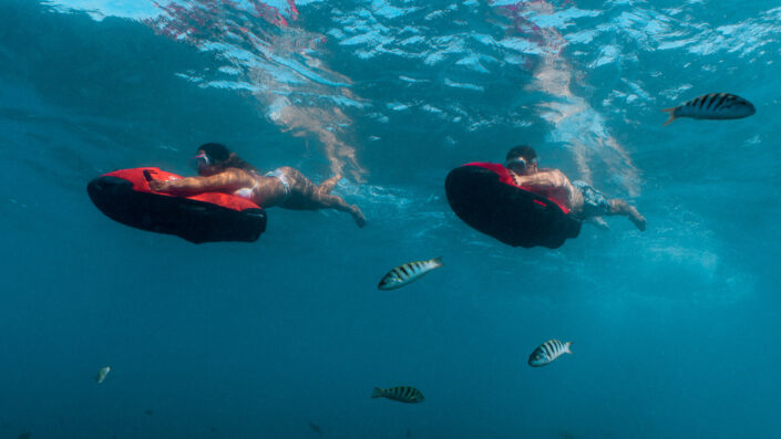 For the more adventurous snorkeler, the Seabob allows you to glide underwater at high speed. This underwater scooter gives you a dolphin’s perspective on life beneath the waves, and can be used either when snorkeling or diving. Travel further faster and see more of the reef and the amazing underwater life from another point of view.